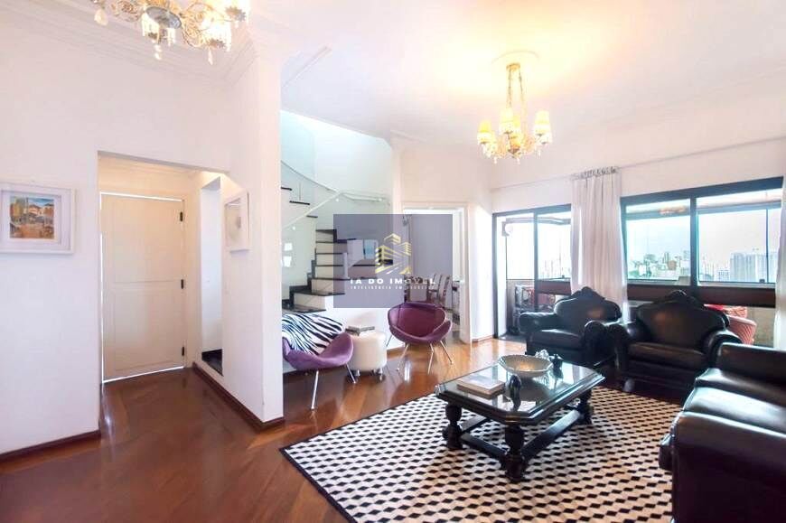 Venda Cobertura Moema Pássaros! Com 402m² de área útil, tem 4 Suítes, uma delas sendo utilizada como escritório, living com sacada, sala de jantar, lavabo, cozinha com janelões, área de serviço com quarto e banheiro de empregada, e despensa! 3 vagas livres! Imóvel com ótimos armários embutidos! Condomínio tem 1 torre, guarita blindada, grupo gerador, sistema de segurança para bloquear acesso ao andar pelo elevador, bom recuo frontal, piscina descoberta mas aquecida, amplo salão de festas e sala de ginástica, estes últimos 2 itens passando por ampla reforma sob lindo projeto, quadra, jardim e área pet! Localizado no miolo de Moema: 750 metros CONSA, 800 metros Shopping Ibirapuera e Metrô Eucaliptos, 900 metros Escola Móbile, 1100 metros Metrô Largo de Moema, 1500 metros Parque Ibirapuera.