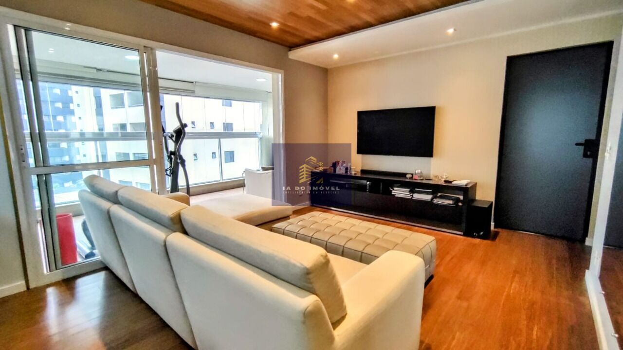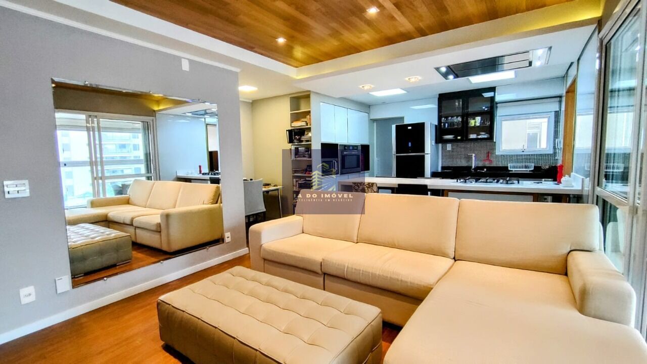 Apartamento com 4 vagas, sendo 2 escrituradas, 2 suítes, 1 dormitório com banho social, lavabo, sala com cozinha americana, terraço gourmet com churrasqueira, área de serviço sepada da cozinha, wc serviço, despensa e área de 128m²