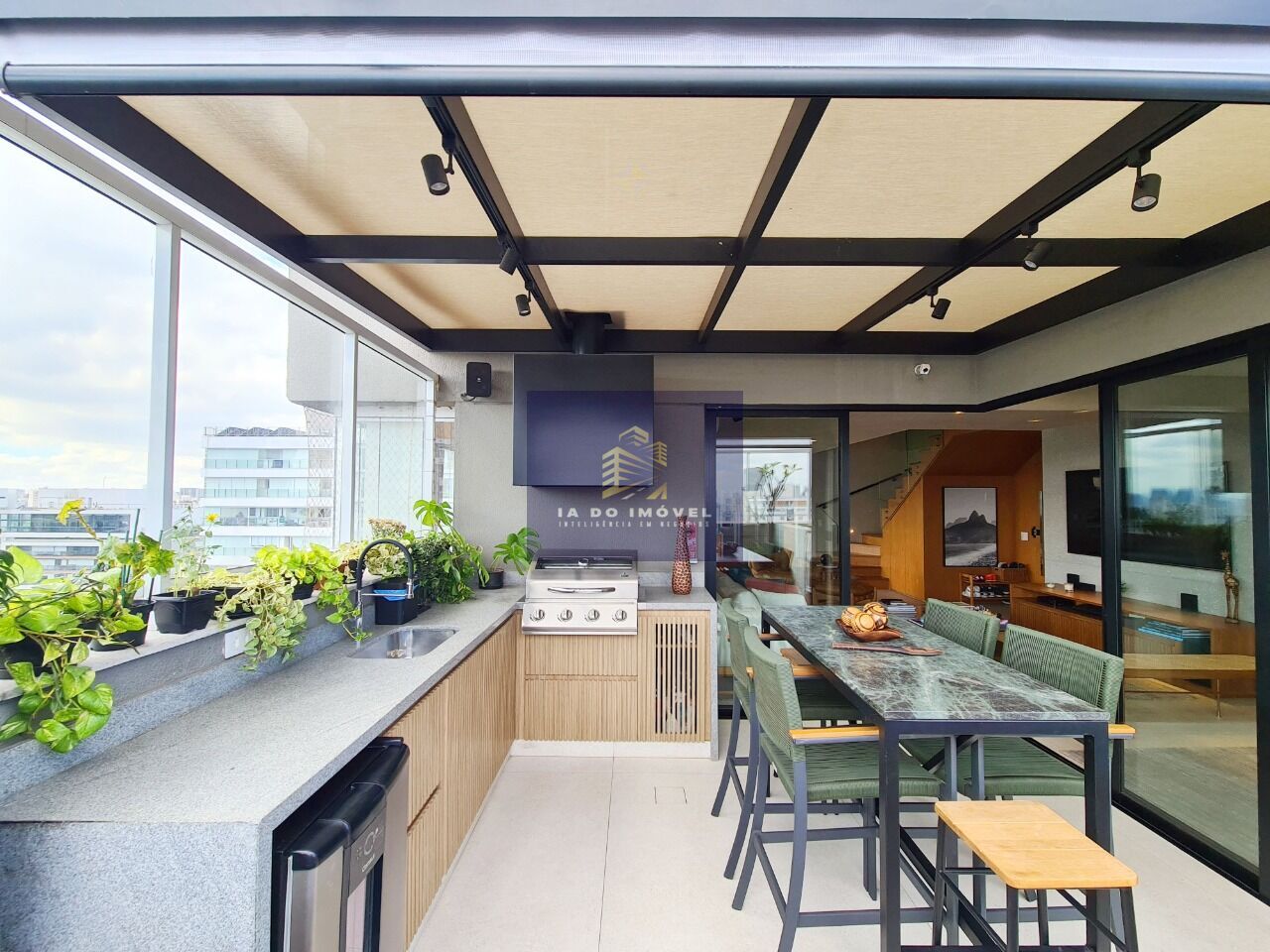 Esta é uma Maravilhosa Cobertura Assobradada e seus espaços são muito mais bem aproveitados, pois a sala do dia a dia fica em linha com a área gourmet e a piscina e a família acaba usando e desfrutando muito mais desse espaço especial.