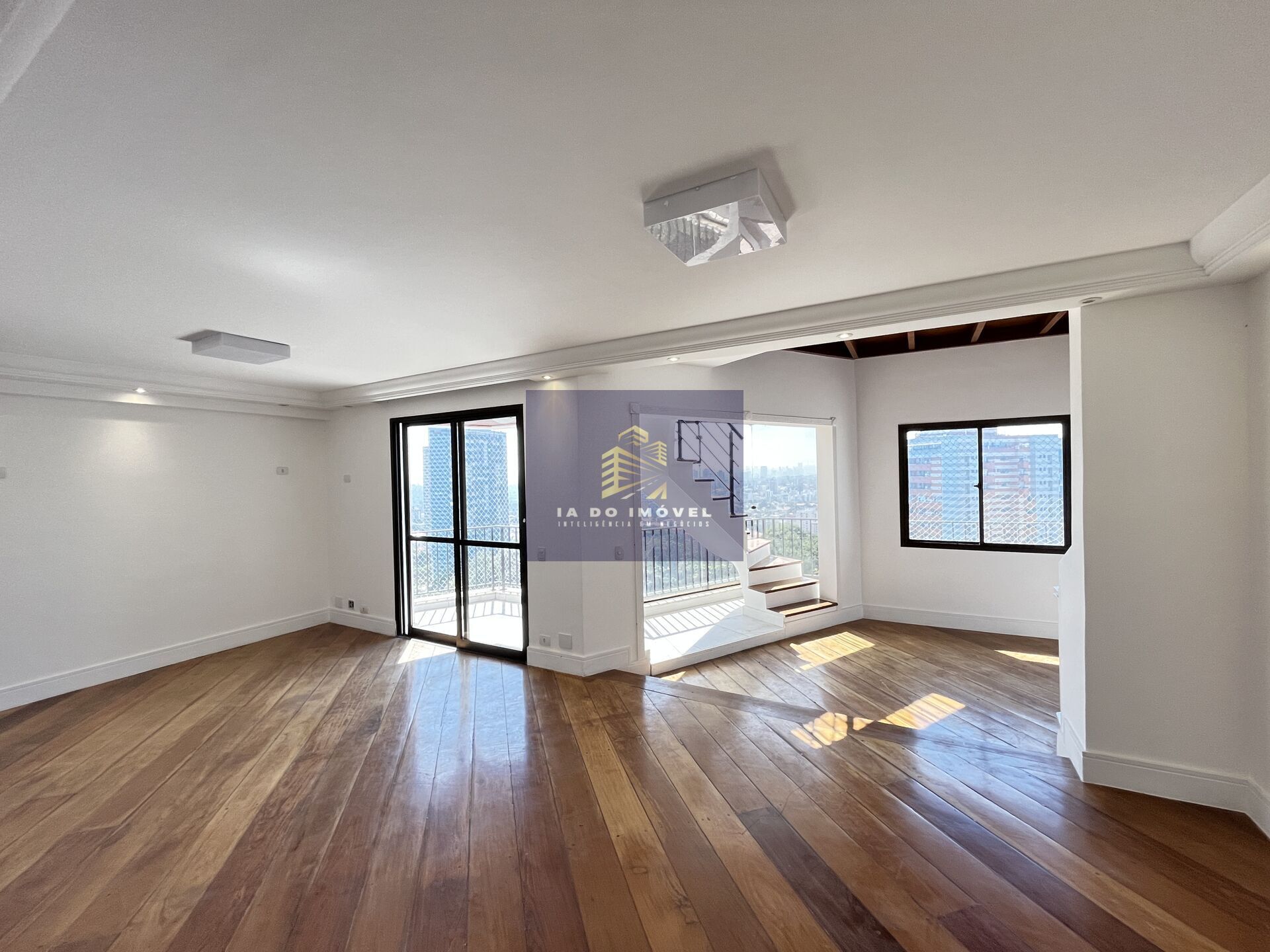 Na parte superior do duplex, uma sala que também pode ser usada para 2 ou até 3 ambientes. Um excelente lavabo atende quem estiver nessa parte superior. Uma grande suíte completa a parte interna no andar superior do duplex.