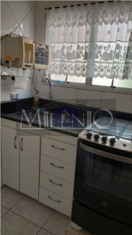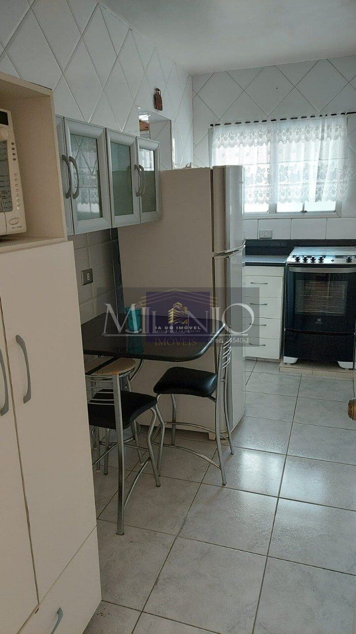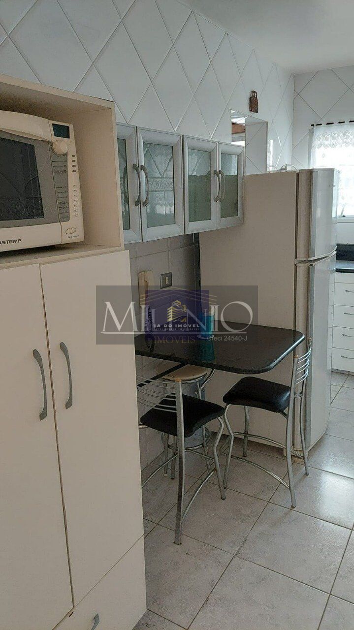 Com 2 dormitórios com armários, 1 banheiro social e mais 1 lavabo, sala e cozinha e vaga coberta e livre. Apartamento mobiliado com cama de casal, sofá, geladeira, fogão, máquina de lavar, Microondas, mesa de jantar com 6 lugares e mesa na cozinha para 2 lugares.