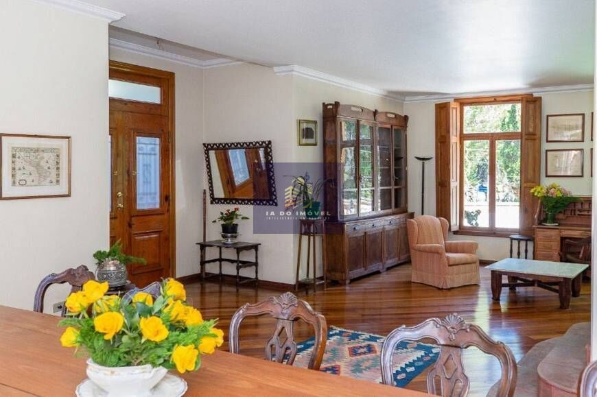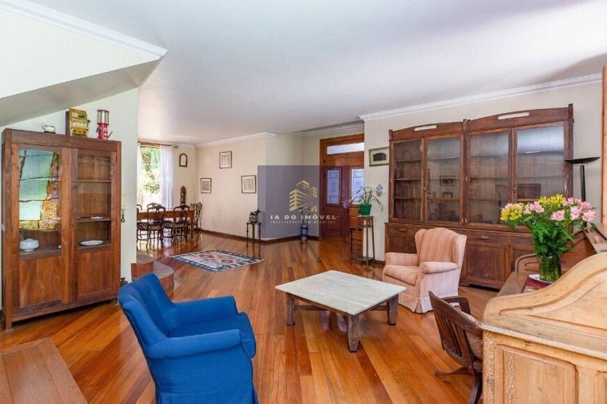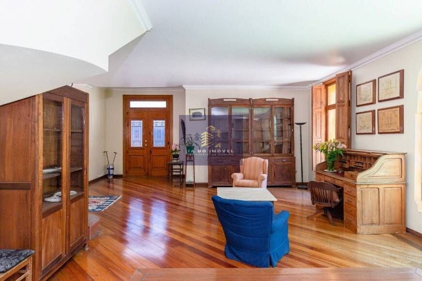 Casa de esquina com três andares no Estilo Toscana com projeto que valoriza a entrada de luz natural, através de suas grandes janelas feitas em pinho de Riga além de dois grandiosos vitros,. No primeiro andar living com três ambientes integrados com lareira e vista para jardim, lavabo No piso superior quatro suítes espaçosas. No térreo copa integrada com a cozinha, despensa, área de serviço completa. Jardim espaço permite várias possibilidades de lazer como uma piscina, espaço gourmet. Cinco vagas de garagem cobertas.