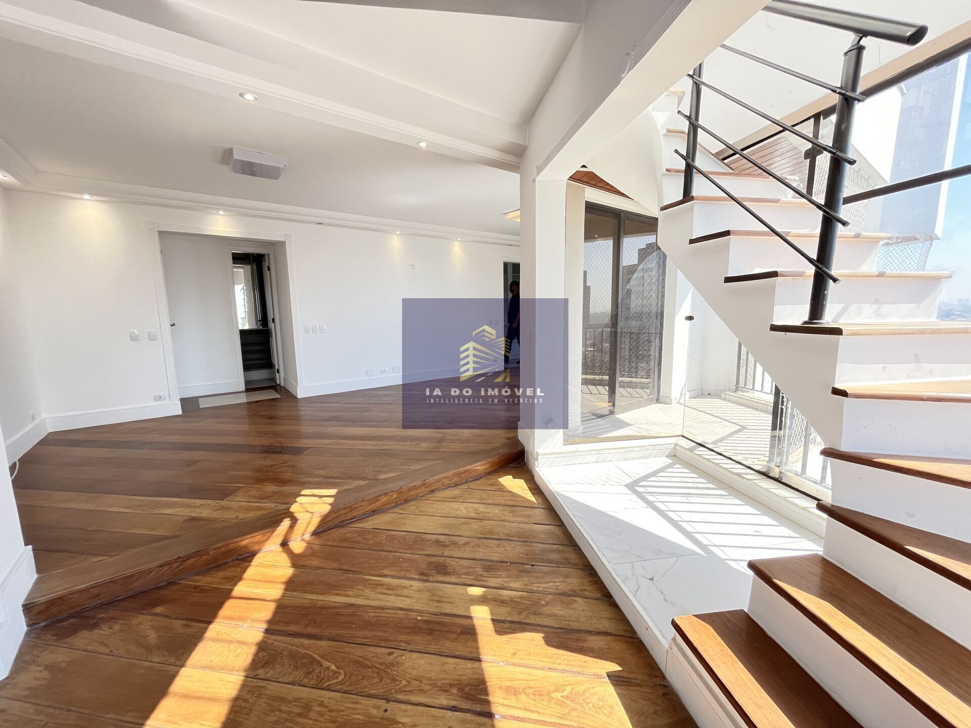 Na parte superior do duplex, uma sala que também pode ser usada para 2 ou até 3 ambientes. Um excelente lavabo atende quem estiver nessa parte superior. Uma grande suíte completa a parte interna no andar superior do duplex.