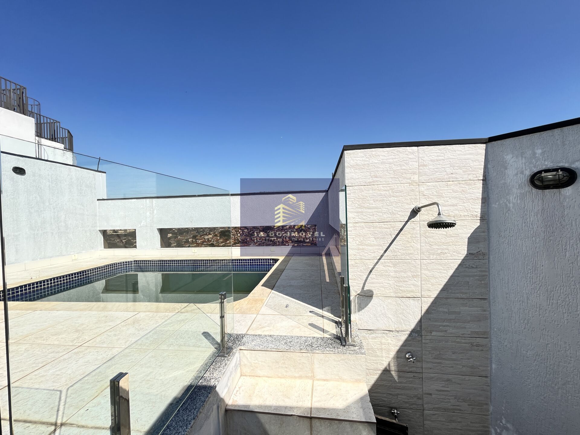Na parte exterior fica a disposição uma excelente área de lazer com churrasqueira, piscina com chuveirão e sauna seca. Toda área externa é muito segura pois os muros são altos e ainda dispõem de vidros para apreciação da maravilhosa vista. Como o prédio encontra-se na parte mais elevada do bairro, a vista é imperdível.