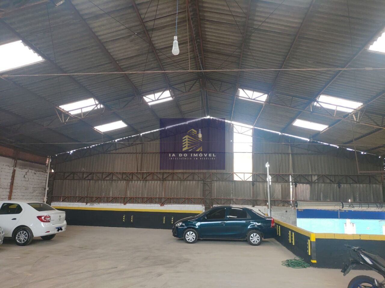 Telhado com estrutura metálica e Piso concreto em plataforma de 1,30cm acima da rua, ( Servia como plataforma Logística ).